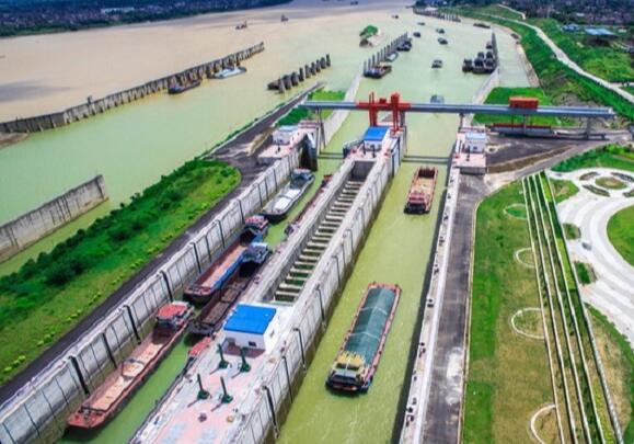 这样,河水被大坝隔断,上下游的水位差较大,航船无法通过。 于是人们就利用连通器的原理,在运输频繁的江河上,在大坝的旁边修建了船闸。 船闸主要由闸室及上下游闸首所组成,闸室的两端设置闸门,用以与上下游隔开。 当船下行时,先将闸室充水,待室内水位与上游相平时,将上游闸门开启,让船只进入闸室。 随即关闭上游的闸门,闸室放水,待其降至与下游水位相平时,将下游闸门开启,船只即可出闸。 上行时与上述过程相反。船闸须设有专门充水、放水系统及操纵闸门的设备。 根据地形以及水位差的大小,船闸可做成单级或多级的。 二、船闸的作用及原理是什么?