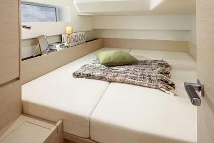 产品简介我们的目标是开发一个新的40英尺的游艇,结合最新的创新,同时保留Javier Soto Acebal的设计天赋。这就是Solaris 40的诞生过程,众多的改进使这个新项目在船体性能和海上舒适度方面都很突出。从船体开始,Solaris选择了一个极具浮力的船头线,其特点是在船体中部有一个微妙的弦线。 前方的高浮力被宽阔的船尾部分所平衡,这有利于双舵的使用,确保了出色的方向稳定性。宽阔的驾驶舱配备了两个全宽的转向踏板:这是一个独特的功能,即使在喷水罩升起的情况下,也可以毫无遮挡地向前掌舵。在踏板的前方,有方便的台阶通往侧面甲板。救生绳在这个位置上略有倾斜。 与建筑师Roséo合作设计的内饰,有两个版本可供选择。3个船舱和2个卫生间,或2个船舱和2个卫生间,带独立淋浴。高质量的内部设计非常精致,6个船体窗户提供了自然光。布局是经典的,L型厨房位于伴侣道的左边。 英文介绍Our objective was to develop a new 40’ yacht incorporating the very latest innovations, whilst preserving the design flair of Javier Soto Acebal. This is how the Solaris 40 was born, with numerous evolutions that distinguish this new project, in both hull performance and comfort at sea. Starting with the hull, Solaris has chosen an extremely buoyant bow line, characterized by a subtle chine that ends at mid-hull. The high buoyancy forward is balanced by the broad aft sections, which facilitate the twin rudders that ensure excellent directional stability. The broad cockpit is equipped with two full-width steering pedestals: this is a unique feature to helm with an unobstructed view forward, even with the sprayhood up. Forward of the pedestals, there are convenient steps up to the side decks. The lifelines are slightly angled from that position. The interiors, designed in collaboration with architect Roséo, are available in two versions: 3 cabins and 2 bathrooms or 2 cabins and 2 bathrooms with a separate shower. The high-quality interior design is extremely refined, with 6 hull windows providing natural light. The layout is classic, with an L-shaped galley located to the left of the companionway. |
