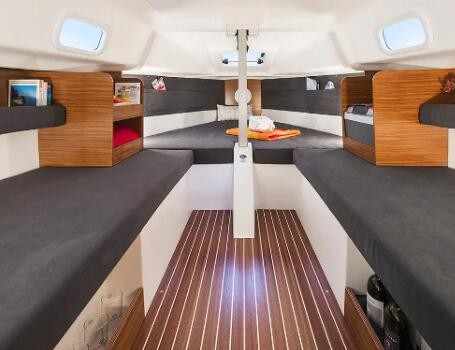 产品简介现代的外观承载着新光 28.1 和 40.1 的新设计语言。 新款 SUNBEAM 22.1 吸引了巡航和帆船赛的船员,并且非常灵活。 船体上的连续下坡和自修的山溪钻机凸显了这些野心。 两米长的长凳,船头和船尾纸浆包含在标准版中,护栏、沐浴梯子加上自尾绞车在客舱屋顶,反映了对舒适性的需求。 与 J & J Design 合作,开发了许多精密的细节解决方案,如可伸缩的预平衡仿生舵或旋转镇流器剑。 在此模型中,压载体被集成到船体中,以确保高安全性和稳定性。 舷外发动机可以在轨道上轻松安全地从水中抬出,并储存在驾驶舱的后箱中,而无需拆卸。 长 6.70 米和 2.45 米宽 SUNBEAM 22.1 由于其重量轻 1.2 吨和集成的桅杆铺设装置,可以很容易地滑落和拖动。 全新 SUNBEAM 22.1 拥有 17.5 平方米的主帆和 9 平方米的头帆,但动力不足,可以选择配备一个滚落式发电机。 由于船头采用特殊的船体设计,带双泊位的内部为这个船尺寸提供了充足的空间,如有需要,可扩展至四个泊位。 无论是家庭度假还是帆船赛,新款 SUNBEAM 22.1 是全年喜欢移动和灵活的水手的理想解决方案。 英文介绍The modern look carries on the new design language of SUNBEAM 28.1 and SUNBEAM 40.1. The new SUNBEAM 22.1 appeals to both cruising and regatta sailors alike and is extremely versatile. Continuous chines on the hull and a backstay-less self trimming mountain stream rig underline these ambitions. Two-metre-long benches, bow and stern pulpits included in the standard version, guardrail, bathing ladder plus self tailing winches on the cabin roof, reflect the demand for comfort. In cooperation with J&J Design, numerous sophisticated detail solutions have been developed, such as the retractable pre-balanced bionic rudder or the pivoting ballast sword. In this model, the ballast body is integrated into the hull to ensure high safety and stability. The outboard engine can be easily and safely lifted out of the water on a rail and stored in one of the back boxes in the cockpit without having to disassemble it. The 6.70 meter long and 2.45 meter wide SUNBEAM 22.1 can easily be slipped and trailed due to its low weight of 1.2 tons and an integrated mast laying device. With a mainsail of 17.5 square meters and a headsail of 9 square meters, the new SUNBEAM 22.1 is anything but underpowered and can optionally be equipped with a roll down gennaker. Due to the special hull design at the bow, the interior with a double berth offers ample space for this boat size and can be extended to four berths if required. Whether for family holidays or regatta racing, the new SUNBEAM 22.1 is the ideal solution for sailors who like to be mobile and flexible all year round. |