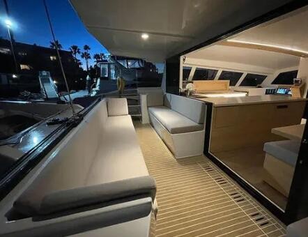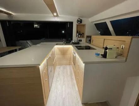 产品简介R5是R系列的原型,已被证明是一个非常有能力的蓝水巡洋舰。在她的开发和建造过程中,我们花了很多心思,强调多功能性、大面积的社交空间、易操作性、性能、刚度和风格。 她的设计理念是在一个52英尺的平台上加入一个大型的开放式布局,其特点是有一个向前航行的驾驶舱,以及一个组合/可转换的沙龙和船尾驾驶舱。事实上,她的工程设计允许翼形甲板区域完全没有支持性的家具,这使得她的厨房可以是一个非常友好的岛屿风格,有全宽的船尾驾驶舱门,或者是一个巨大的U形厨房,其尺寸可以在更大的猫上找到。她的航行驾驶舱有双门和一个可旋转的舵手,允许3个不同的门和航行配置,这使她有一个更大的游艇的感觉。 最初的R5被定位为一个具有阁楼氛围的双胞胎船主的客房。多年来,她已经有了相当大的发展,包括一个更加面向家庭的版本,但是这两个版本都有各种豪华的装饰,用来补充船只的整体感觉和居住性。大型可丽耐厨房和厨房台面,洗碗机,电磁炉烹饪,以及大量的储存能源,都是用手工发泡的天然竹子橱柜和装饰品完成的,这些只是这些游艇的一些方面,使他们的生活非常舒适。 R5的开发是为了充分利用电力推进系统,特别是Torqeedo深蓝系统,其中对船体进行了详细的静水和流动分析,以确保效率。 英文介绍The R5 is the original in the R series and has proven to be a very capable bluewater cruiser. A lot of care and consideration was taken in her development and construction with an emphasis on versatility, large social areas, ease of handling, performance, rigidity, and style. Her design brief was to incorporate a large open layout onto a 52-foot platform that featured both a forward sailing cockpit as well and a combined/convertible salon and aft cockpit. In fact, her engineering allows the wing deck area to be completely free of supporting furniture which allows her galley to be either a very sociable island style with full-width aft cockpit doors or a huge U-shaped galley of a size found on much larger cats. Her sailing cockpit has dual doors and a pivoting helm that allows for 3 different door and sailing configurations which gives her the feel of a much larger yacht. The original R5 was positioned to be a twin owner’s stateroom with a penthouse vibe. She has evolved a fair bit over the years to include a more family-oriented version however both versions feature a variety of luxury finishes used to complement the overall feel and liveability of the vessel. Large Corian kitchen and galley countertops, dishwashers, induction cooking, and vast amounts of stored energy all finished in handcrafted foam-cored natural bamboo cabinetry and trims are only some aspects of these yachts that make them very comfortable to live on. The R5 was developed to take full advantage of electrical propulsion systems, in particular the Torqeedo Deep Blue system where detailed hydrostatic and flow analysis was performed on the hulls to ensure efficiency. |