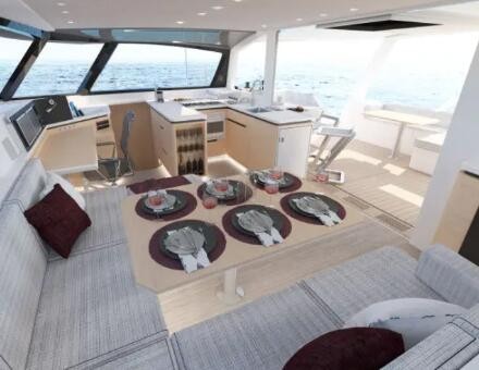 产品简介性能和生活方式的完美平衡 通过精心的设计和先进的轻质结构,这艘巡航双体船轻巧灵活,但关键是能够在对性能影响最小的情况下进行重载,这艘巡航双体船带来了双体船设计上的一个世代的进步。1370是按照现代巡航水手所要求的海上操作性能和船上舒适度的明确平衡来建造的。 在无与伦比的舒适中进行蓝水巡航 性能和生活方式的完美平衡 开放式生活,沙龙、厨房、驾驶舱和舵手都在一个层面上,这艘双体船拥有无可比拟的开放式生活区域。但是,1370并不满足于在所有的盒子里打勾,它又向前迈进了一步,采用了另一个海风号的首创设计--带有集成座椅的创新的新早餐(或晚间)酒吧。它将使一天快速航行后的第一次休息成为一种真正简单的乐趣,并在早晨准备出发时作为一个咖啡区。1370包括一个集成的驾驶舱烧烤炉和水槽,以及前甲板和驾驶舱的休息室。 在无与伦比的舒适中进行蓝水巡航 两者的最佳结合 高规格的工艺 这艘全新的双体船配备了所有的现代必需品,同时在每个层面都采用了真正的造船工艺。1370配备了精致的木工制品,并有一个平衡的沙龙,由于Seawinds著名的三折门和基本的前开窗系统,使其沐浴在明亮的自然光和通风的气流中。全面装备的厨房标准配备了酒吧冰箱,大型1301冷冻箱 英文介绍A PERFECT BALANCE OF PERFORMANCE AND LIFESTYLE Light and nimble through meticulous design and advanced lightweight construction - but crucially, capable of being heavily loaded with the minimum of impact on performance, this cruising catamaran brings about a generational step forward in catamaran design. The 1370 is built to a well-defined balance of sea handling performance and live aboard comfort demanded by modern cruising sailors. BLUEWATER CRUISING IN UNRIVALLED COMFORT THE PERFECT BALANCE OF PERFORMANCE & LIFESTYLE Open-plan living, with saloon, galley, cockpit and helms all on one level, this catamaran boasts incomparable open living area. But not content with ticking all of the boxes, the 1370 advances one step further with another Seawind first - the innovative new breakfast (or evening) bar with integrated seating. It will make taking that first rest after a day of fast sailing a truly simple pleasure and serve as a coffee area in the morning when you're ready to get going. The 1370 includes an integrated cockpit BBQ and sink, as well as foredeck and cockpit lounges. BLUEWATER CRUISING IN UNRIVALLED COMFORT THE BEST OF BOTH WORLDS HIGH SPECIFICATION WITH CRAFTSMANSHIP This all-new catamaran is equipped with all of the modern necessities, while employing true boatbuilding craftsmanship at every level. The 1370 is fitted with exquisitely crafted carpentry throughout, complimented by a well balanced saloon that is bathed in bright natural light and ventilating airflow thanks to Seawinds famed Tri-fold door and essential fwd opening window system. The comprehensively equipped galley comes standard with bar fridge, large 1301 chest freezer |