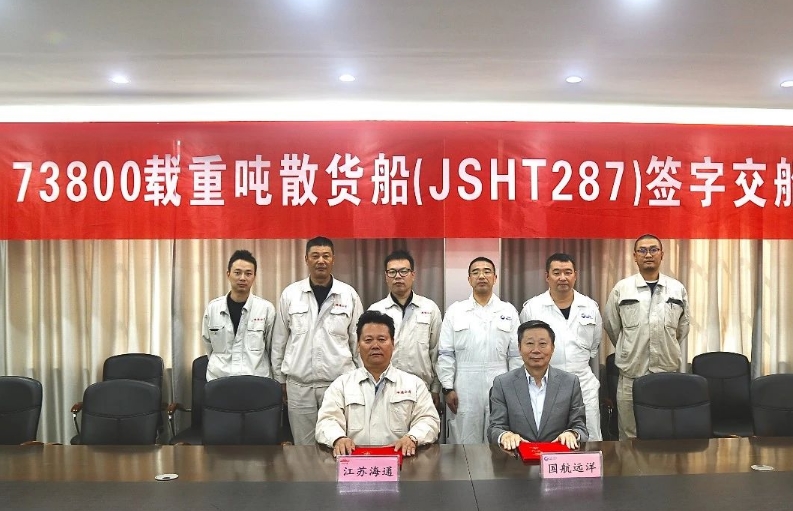 | 10月24日海通海洋为国航远洋建造的73800载重吨散货船交付! |