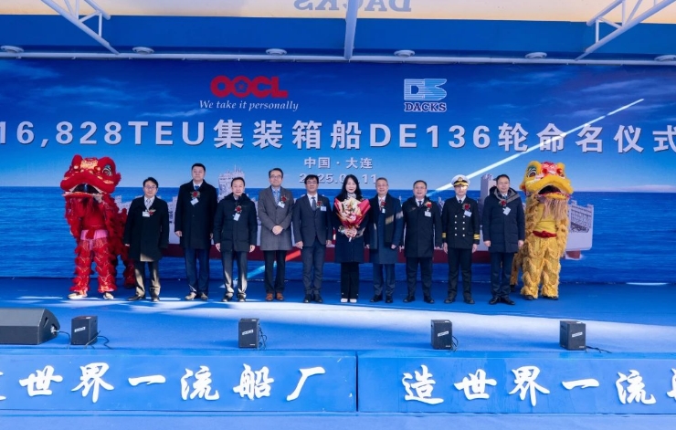 2025年1月11日东方海外16,828 TEU集装箱“东方向日葵”轮举行命名仪式中远海控旗下东方海外货柜航运有限公司(“东方海外”)11日在大连中远海运川崎船舶工程有限公司庆祝第三艘全新16,828 TEU集装箱“东方向日葵(OOCL Sunflower)”轮的命名。 该系列最新环保型16,828 TEU货轮采用了领先的技术,配备了高智能化的设备,展现出优异的环保性能和卓越的运营效率。其设计不仅符合而且超越了当前的环保标准,更彰显了东方海外对可持续发展所作出的坚定承诺。