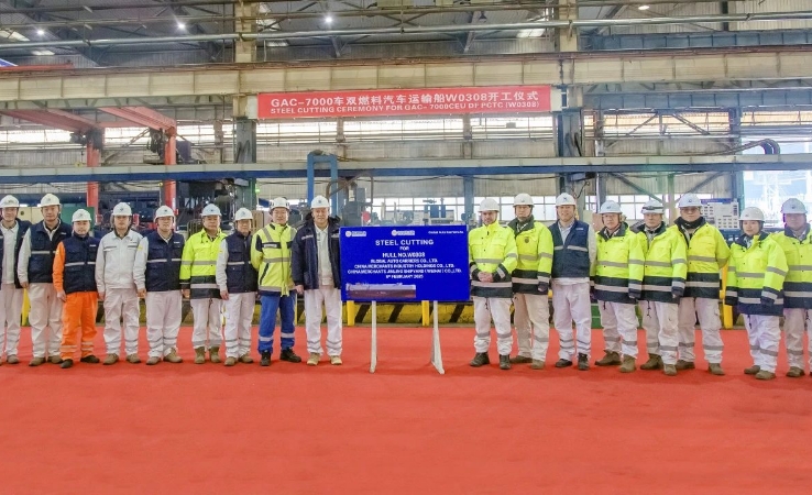 2月6日,招商工业威海金陵为挪威GAC船东精心打造的7000车双燃料汽车运输船3号船(W0308 项目)正式开工。这一重大项目的启动,标志着招商工业在绿色航运领域的又一次重大突破。