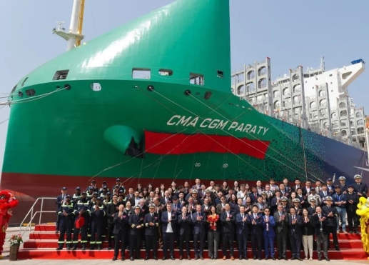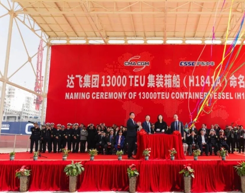 4月9日沪东中华建造的第三艘13000TEU双燃料动力集装箱船交付4月9日,由中国船舶集团有限公司旗下沪东中华造船(集团)有限公司联合中国船舶工业贸易有限公司为法国达飞集团建造的被誉为全球最新款清洁能源“海上绿巨人”13000TEU液化天然气(LNG)双燃料动力大型集装箱船系列3号船“CMACGMPARATY”号,在中船长兴造船基地命名交付。这标志着南美洲东海岸航线又将新添一艘中国“智”造的大型双燃料动力集装箱船,也为达飞箱船船队持续壮大发展贡献了新的中国动能。