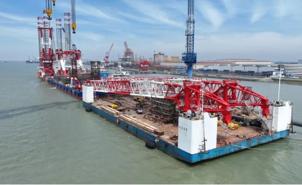 | 7月17日振华重装为中交二航局建造5500吨双臂架变幅式起重机完成总装 |