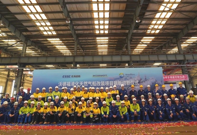 2024年7月31日北海造船举行液化天然气改装船首次钢板切割仪式7月31日,中国船舶集团青岛北海造船有限公司举行了沃德福液化天然气改装船(FST)项目的首次钢板切割仪式,标志着该项目钢结构建造工作的正式启动,象征着北海造船在修船历史上翻开了新的篇章。