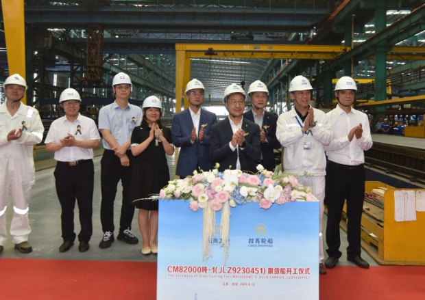 2024年8月12日8.2万吨卡姆萨型散货船首制船开工!2024年8月12日,招商轮船向招商工业订造的4艘82000吨Kamsarmax型系列散货船中的首制船“CM82000-1”(JLZ9230451)开工仪式在江苏仪征举行。招商轮船总经理助理、香港明华总经理张金提,招商工业总经理助理、招商局金陵船舶(南京)有限公司(下称“招商金陵”)总经理姜福海出席开工仪式。