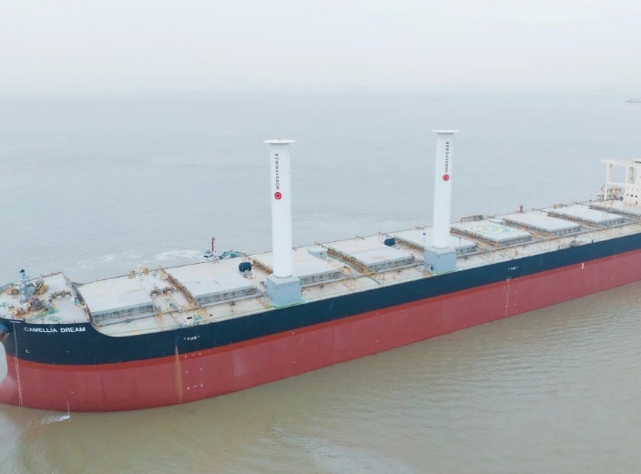 8月20日舟山中远海运重工完成好望角型船旋筒风帆安装 正式投入运营!8月20日,在舟山中远海运重工完成35米高折叠式旋筒风帆安装的大型矿砂船“山茶之梦(CamelliaDream)”号,首次停靠在巴西马德里亚角,正式投入运营。