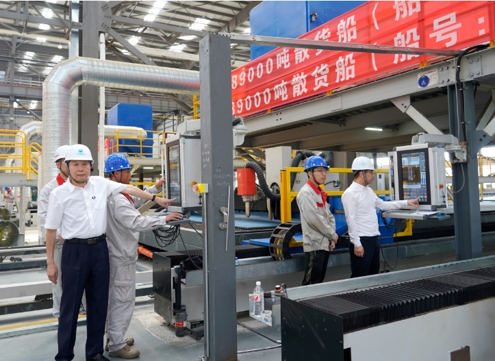 9月9日芜湖造船厂两艘89000吨甲醇双燃料散货船举行开工建造仪式9月9日,芜湖造船厂为福建国航远洋运输(集团)股份有限公司(简称“国航远洋”)量身打造的89000吨甲醇双燃料散货船1号船(船号W23141)和2号船(船号W23142)项目在威海基地举行开工建造仪式。 国航远洋副总裁韩青、芜湖造船厂生产管理部部长慕德君、中国船级社威海处处长苑金民共同签署开工文件。国航远洋副总裁韩青、监造组组长杨光同时按下激光切割机启动按钮,火花四射,首制船与二号船同时开工。