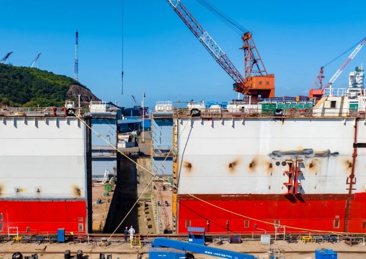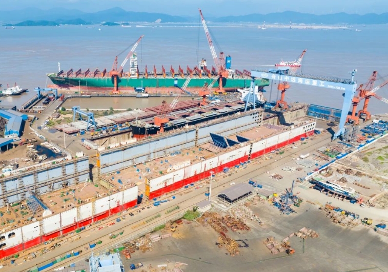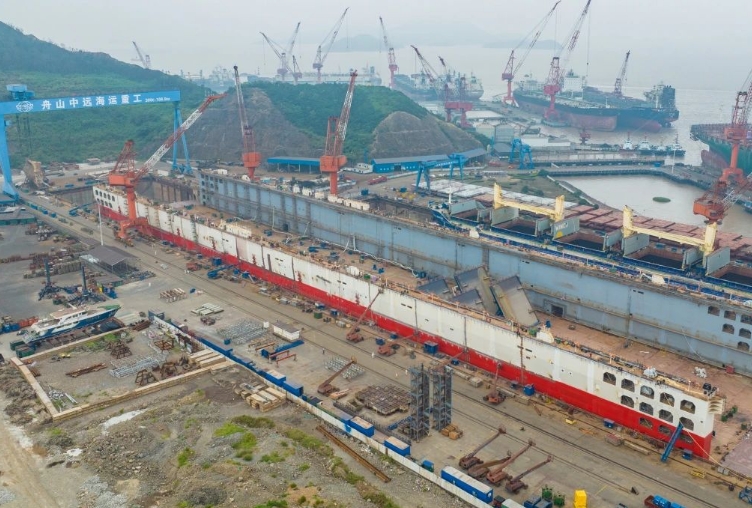 2024年10月19日舟山中远海运75000吨举力浮船坞实现大合拢节点!10月19日晚18时许,随着2号船坞缓缓向外排水,75000吨举力浮船坞项目总指挥的对讲机中陆续收到各线条数据反馈报告:大合拢口结构对位良好、坞墩对位精准、外板无变形、中心直线度数据良好……标志着舟山中远海运重工仅用30小时顺利完成了该项目3个环段的整体合拢任务。