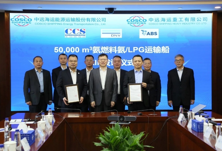 截至目前,中远海运能源已投入运营1艘LNG双燃料VLCC,并下单订购3艘11.4万吨阿芙拉型甲醇双燃料原油运输船。此次50000立方氨双燃料氨/LPG运输船船型认可证书的颁发,标志着中远海运能源成功实现了液化天然气、甲醇、氨等三种主流替代燃料及碳捕集技术在船型应用及技术储备方面的“全覆盖”。
