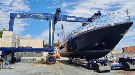 产品简介创新的 PELICAN LIFT 轮式移动码头起重机可以最大程度地安全可靠地进行船只的牵引和下水作业。由于采用了创新的专利设计,即使在没有水边工程(如水池或斜坡)的地方,船坞轮式起重机也能将船只移入或移出水面。前悬臂梁与起重机背面的配重保持平衡,并通过其 "旅行升降式 "吊索系统确保将牵引和下水作业推进到码头之外。 PELICAN LIFT 起重机配备了动态电子转向系统,可在任何情况下实现完美的车轮定位。借助该系统,可以通过遥控器或机载控制装置轻松选择允许的模式(四个转向轮--两个转向轮和两个滑移转向--同心旋转--蟹式转向)。 英文介绍The innovative PELICAN LIFT mobile dockside crane on wheels allows to carry out hauling and launching operations of boats in maximum safety and reliability.Thanks to its innovative and patented design, the dockside wheeled crane allows to move boats to and from the water even where there are no waterfront works, such as basins or ramps. The front cantilever beam is balanced with counterweights in the backside of the crane and ensures hauling and launching operations advancing beyond the dock with its "travel lift style" slings system. PELICAN LIFT crane is equipped with the dynamic electronic steering system for a perfect wheel alignment under any circumstances. Thanks to this system, it is possible to easily choose among the allowed modes (four steering wheels - two steering wheels and two skid steering – concentric rotation - crab steering) with the remote control or optionally with on-board control. |