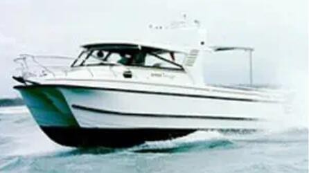 | 双引擎柴油半排水体汽艇(带驾驶舱的14人飞桥双体船) |