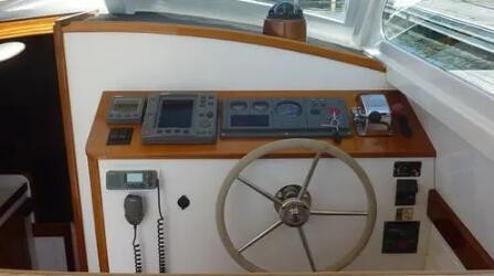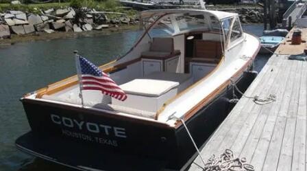 产品简介土狼,照计划发射在2001年6月中旬,是在我们从隆隆声开始jetboats的我们的新系列的三。有巨大兴趣在这个设计上,并且每条小船运载这新的神色的更多提炼。弗兰克蒙加马利走向我们在仔细看在这个大小范围的许多小船以后。他观看了,当我们去年夏天完成了隆隆声,并且,当我们开始了HALCYONE,他喜欢她新的外部神色。其中一个小船的蒙加马利的主要标准是一个真实地附上的头和驾驶舱船上厨房安排。土狼适合水槽,并且两个冰柜,其中之一是在舵位子的在船尾的边供给动力的DC。附上的头相当恰好解决了并且提供更多室比最初认为。我们再降低了挡风玻璃并且倾斜它促进在船尾与6' 1"在中心线的净空高度,给小船最光滑的神色。她装备Espar暖气和搅盘机。Yanmar 350在顶端将提供30个结末端和容易的25结巡航。英文介绍COYOTE, launched in mid-June 2001 as scheduled, is the third in our new series of jetboats we began with RUMBLE. There has been tremendous interest in this design and each boat carries more refinements of this new look. Frank Montgomery came to us after carefully looking at many boats in this size range. He watched as we completed RUMBLE last summer, and when we started HALCYONE, he liked her new exterior look. One of the Montgomery's main criteria for the boat was a truly enclosed head and cockpit galley arrangement. COYOTE is fitted-out with a sink and two ice chests, one of which is DC powered on the aft side of the helm seat. The enclosed head has worked out quite nicely and offers more room than originally thought. We have lowered the windshield again and raked it further aft with 6'1" headroom on centerline, giving the boat the sleekest look yet. She is equipped with Espar heating system and windlass. The Yanmar 350 will provide 30 knots at top end and an easy 25-knot cruise. |