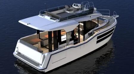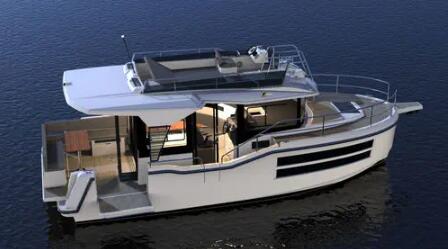 | 双引擎柴油半排水体汽艇(带驾驶舱的14人飞桥双体船) |