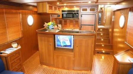 产品简介月之女神45是一个完全地下一代月之女神。她是普遍和被证明的月之女神操舵室拖网渔船线的小模式。设计和修造象她的更大的姐妹,她是一个严肃的段落制造者和一个最好沿岸和内地巡洋舰。在新的月之女神45的船上厨房在可以是延长的对一大饭桌的真皮和喂lo桌里可以被抵消到提供一个宽敞沙龙的右舷以一个L形的沙发,或者中心船上厨房仍然是选择。被上升的操舵室手表长椅提供乘员组的一个权威的看法与一张固定的桌,并且可以安装一把任意舵椅子!月之女神45是原始的月之女神43的一个演变的版本。扩充域 设计特点与提供更长的吃水线和较少苏醒阻力的它的巡洋舰Stern™的新的深刻的船身设计,以及在传染病院里面的更多储存空间。它也增加几乎12高度″在机舱到66'',还考虑到200加仑(757 l)燃料!所有这做,无需增加草稿,并且LOA比第一代月之女神43是一半一只脚长。安全总是在所有月之女神游艇的一种优先权:对甲板的通入是从操舵室口岸和右舷门,与被保护的旁边甲板,以及保留乘员组保险柜的葡萄牙桥梁,不管海洋条件是。在内部,下一代设计翻译为一个更大的沙龙和更多舒适和豪华,不必提及一个洞穴状军人购物部在可能采取大量的物资供应、备件、下潜齿轮和甚而第二个冷藏库沙龙下的尾部。 英文简介The Selene 45 is an entirely Next Generation Selene. She is the smallest model of the popular and proven Selene Pilothouse Trawler line. Designed and built like her larger sisters, she is a serious passage-maker, and a superlative coastwise and inland cruiser. The galley on the new Selene 45 can be offset to starboard providing a spacious salon with an L-shaped sofa in genuine leather and a hi-lo table that can be extended to a large dining table, or the center galley is still an option. The raised pilothouse watch settee offers a commanding view for the crew with a fixed table and an optional helm chair can be installed! The Selene 45 is an evolved version of the original Selene 43.EXTENDED RANGE The design features the new Deep Hull design with its Cruiser Stern™ that provides a longer water line and less wake drag, as well as more storage space inside the lazarette. It also adds nearly 12″ of height in the engine room to 66’’, which allows for 200 more gallons (757 l) of fuel! All this is done without increasing the draft, and the LOA is half a foot longer than the first generation Selene 43. Safety is always a priority on all Selene yachts: access to the deck is from the pilothouse port and starboard doors, with sheltered side decks, as well as a Portuguese bridge which keeps the crew safe no matter what the ocean conditions are. On the interior, the next generation design translates to a bigger salon and more comfort and luxury, not to mention a cavernous commissary under the aft end of the salon which can take a huge amount of provisioning, spare parts, dive gear and even a second deep-freezer. |