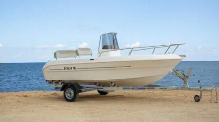 产品简介Brava 16 是 Mingolla 系列中第一款配备 40 至 90 马力发动机的游艇,是开始海洋世界探险的完美之选,尽管尺寸较小,但驾驶舱空间宽敞,且不会影响船上的舒适度。标准配置 驾驶台配有不锈钢扶手、挡风玻璃、方向盘、储藏室和前排座椅; 360° 导航灯和杆灯; 机械转向; 不锈钢夹板和吊环螺栓; 船首锚柜,带舱口和出海口; 不锈钢船首滚筒; 灭火器支架; 全封闭式坐垫; 梯子; 舱底泵。 可选配置 油箱 船身盖 控制台盖 不锈钢双桅帆船 桌腿 彩色船体; 淋浴系统; 不锈钢 T 形顶; 液压转向系统。 英文简介First size of Mingolla’s range, is presented with engines from 40 to 90 HP, the Brava 16 represents the perfect boat to start an adventure in marine world, that, despite its small size, presents large spaces in the cockpit without sacrificing comfort on board.Standard equipments Driving console with stainless steel handrail, windshield, steering wheel, storage compartment and front seat; 360° navigation and pole lights; Mechanical steering; Stainless steel cleats and eyebolts; Bow locker for anchor with hatch and sea discharge; Stainless steel bow roller; Fire extinguisher holder; Complete closed cell cushions; Ladder; Bilge pump. Optionals Fuel tank; Overhull cover; Console cover; Stainless steel bimini; Table leg; Colored hull; Shower system; Stainless steel T-top; Hydraulic steering. |