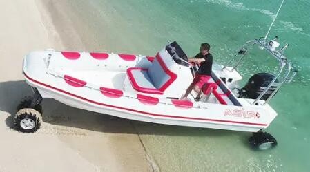 产品简介唯一的4WD水陆两栖船使用我们的两栖刚性充气艇去其他船不能去的地方。 想缩短反应时间,有效地巡逻水面区域,或为客户提供难忘的体验,请不要再找了。一旦你坐上了ASIS两栖船,你就再也回不去了。它给你带来的机动性、多功能性和自由是无与伦比的。ASIS专业水陆两栖船在世界各地受到执法、消防、搜索和救援、海岸警卫队巡逻、洪水救援以及运输和导游等专业航海人员的青睐。 可作为所有ASIS船的升级选项,范围从5.1米到12米。 可用于舷外和舷内动力的船只 可用于玻璃纤维或铝制船体的船只 AAS水陆两栖系统 水陆两栖系统由电动、可伸缩和可转向的轮子组成,为船只提供离水能力。整个系统是海事化的,在航行中完全不在水中。这意味着对水上性能没有任何影响。一旦安装了水陆两栖技术,任何ASIS船将能够通过使用四个可伸缩的轮子和一个与船内马达相连的液压系统直接在陆地和海洋之间行驶。ASIS专业水陆两栖船是专门为你的任务而设计的。 英文介绍THE ONLY 4 WD AMPHIBIOUS BOAT OUT THEREGo where no other boat can with our Amphibious Rigid Inflatable Boat Looking to cut on response times, patrol aquatic areas efficiently or deliver unforgettable experiences to customers, look no further. Once you’ve been on an ASIS Amphibious Craft, you wont be able to go back. The mobility, versatility and freedom it gives you are unparalleled. ASIS Professional Amphibious Boats are favoured around the world for professional mariners in Law Enforcement, Firefighting, Search and Rescue, Coast-Guard Patrol, Flood Rescue as well as Transportation and guided tours. Available as an upgrade option for all ASIS boats ranging from 5.1 meter to 12 meter Available on both outboard and inboard powered boats Available on Fiberglass or Aluminium Hull boats The AAS Amphibious System The Amphibious system consists of motorized, retractable and steerable wheels, powering the boat with off-water capabilities. The entire system is marinized and stays completely out of the water while underway. This means there is no compromise to on-water performance. Once fitted with the Amphibious technology, any ASIS boat will be able to travel directly between land and sea by the use of four retractable wheels with a hydraulic system linked to an inboard motor. ASIS Professional Amphibious Boats are specifically designed for your mission. |