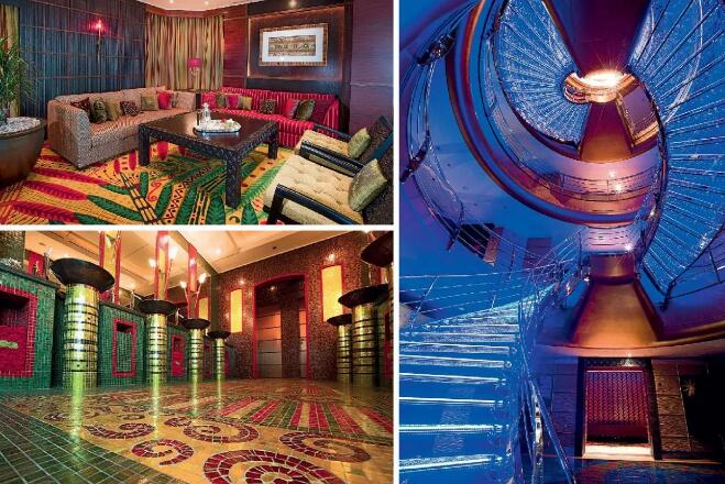 迪拜豪华游艇是一座漂浮的城市,拥有现代化的设施,如水疗中心、游泳池、直升机停机坪和玻璃楼梯。这艘美丽的船最引人注目的特点包括大量的日光浴区、几个按摩浴缸和拥有精美手工瓷砖的游泳池。同样,内部采用精心设计的手工马赛克和令人惊叹的圆形楼梯,玻璃台阶随着从顶层甲板进入的光线而改变颜色。
