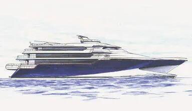 产品简介这个盛大设计为想要最后在宽敞豪华和功能的客户被开发了。 与被改进的经得起海上风浪结合的浩大的内部做速度的容量和段落wavepiercer平台是在这个决定的关键系数。 当总安装的引擎力量是相当地极大的达到40个结最高速度时,一当代monohull superyacht长期将需要是达到等效内部的大约120m。 增加到此优化的monohull形式有能力在40个结上不会是作为efficeint在做速度的更低的段落,因此做出筏一个合理的生态学和财政选择的事实。 这艘船标度允许膳宿横跨提供所有者、客人和乘员组的六个水平传播保密性和分离。 天生存空间里里外外被延长一个大区域-提供关于的两个所有者和客人怎样和哪里的多种选择能花费他们的时间登上。 膳宿提供为: 2在全宽的上甲板主寝室 2在全宽的中间甲板随员 6在3栋x VIP大多室公寓 8在4栋x VIP公寓 6在3 x船长或大师或者飞行员客舱 28在14间x乘员组客舱 新颖的特点包括: 大水下的观察loungeHelicopter着陆或处理的或加油的设施 2的x大型SUV和10辆x摩托车在机上garaging的舷梯 4 x联合招标/玩具车库- 2开放对形式水leveltender相接平台 大戏院,体操,蒸汽浴,迪斯科比赛会议室 所有客人公寓符合温泉水池 所有客人的一个正式餐厅 在船尾的电梯平台 英文介绍This grand design has been developed for a client wanting the ultimate in spacious luxury and functionality. The vast internal volume combined with improved seakeeping and passage making speeds of the wavepiercer platform are key factors in this decision. A contemporary monohull superyacht would need to be approximately 120m long to achieve an equivalent interior while the total installed engine power would be comparatively enormous to achieve a 40 knot top speed. Add to this the fact that a monohull form optimised to be capable of 40 knots would not be as efficeint at lower passage making speed, therefore making the catamaran a sound ecological and financial choice. The scale of this vessel allows accommodations to spread across six levels offering privacy and separation for owner, guests and crew. Day living spaces are spread over a large area - both inside and out that offer multiple choices about how and where owner and guests can spend their time aboard. Accommodations are provided for: 2 in the full width upper deck master suite 2 in the full width mid deck suite 6 in 3 x VIP large multi-room apartments 8 in 4 x VIP apartments 6 in 3 x skipper/master/pilot cabins 28 in 14 x crew cabins Novel features include: A large underwater viewing loungeHelicopter landing/handling/refueling facilities On-board garaging ramp for 2 x full size SUV's and 10 x motorbikes 4 x integrated tender / toy garages - 2 of which open to form water leveltender docking platforms Large cinema, gym, sauna, disco games conference rooms All guest apartments are fitted with spa pools A formal dining room for all guests Aft elevator platform |