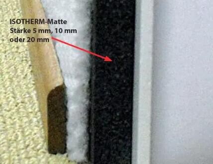产品简介ISOTHERM 垫子--最佳的保温效果 ISOTHERM垫子是一种闭孔聚乙烯泡沫,几乎不吸水,由于它的低导热性,是理想的墙面和天花板保温材料。内部产生的热量被保留下来,并防止夜间降温。在不同的表面(如木头、GRP、金属)粘贴ISOTHERM垫子,就像随后用纺织品、人造革或木材覆盖一样简单。我们推荐使用不含溶剂的UNI粘合剂140。 格式:约200厘米x100厘米(每版2平方米)。 厚度:5毫米、10毫米和20毫米5毫米、10毫米和20毫米 送货时间为1盘起 属性 - 耐温性从-40°C到约+95°C。 - 导热系数约为0.038 W/mK,温度为0°C - DIN 52612。 - 闭孔,几乎不吸水(小于4%) - 耐用 - 用于夹层结构 构成 - 材料 100% PE发泡 - 重量约32公斤/立方米 - 颜色无烟煤/黑色 外形尺寸 - 厚度为5毫米、10毫米和20毫米。 - 格式:约200 x 100厘米(每版2平方米)。 适用领域 船只、游艇和造船、房车和车辆设备。 加工 ISOTHERM垫子可以用我们的无溶剂UNI粘合剂140粘在几乎所有的表面,如木材、GRP、金属。对于5毫米和10毫米的厚度,我们建议在一面涂抹胶粘剂。对于20毫米的厚度,我们建议在两面都涂上胶粘剂(接触式粘接)。垫子只需用美工刀切割成尺寸即可。ISOTHERM垫子可以变形,也可以用热风枪焊接。 英文介绍ISOTHERM mat - optimal insulation The ISOTHERM mat is a closed-cell polyethylene foam that hardly absorbs any water and, thanks to its low thermal conductivity, is the ideal wall and ceiling insulation. The internal heat generated is retained and cooling down during the night is prevented. The gluing of the ISOTHERM mat on different surfaces (e.g. wood, GRP, metal) is just as easy as the subsequent cladding with textiles, artificial leather or wood. We recommend our solvent-free UNI adhesive 140. Format: approx. 200 cm x 100 cm (2 m² per plate) Thicknesses: 5 mm, 10 mm and 20 mm Delivery is from 1 plate Properties • Temperature resistance from - 40 ° C to approx. + 95 ° C • Thermal conductivity approx. 0.038 W / mK at 0 ° C - DIN 52612 • closed-cell, hardly absorbs water (less than 4%) • durable • for sandwich construction Composition • Material 100% PE foam • Weight approx. 32 kg / m³ • Color anthracite / black Dimensions • Thicknesses 5 mm, 10 mm and 20 mm • Format: approx. 200 x 100 cm (2 m² per plate) Areas of application Boat, yacht and shipbuilding, caravan and vehicle equipment Processing The ISOTHERM mat can be glued to almost all surfaces such as wood, GRP, metal with our solvent-free UNI adhesive 140. For thicknesses of 5 mm and 10 mm, we recommend applying adhesive on one side. For a thickness of 20 mm, we recommend applying adhesive on both sides (contact bonding). The mats are simply cut to size with a craft knife. The ISOTHERM mat can be deformed and also welded with heat (hot air gun). |
